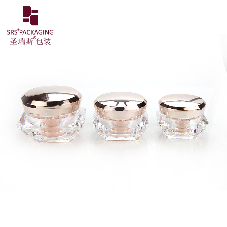 J060C हीरे के आकार का एक्रिलिक चमकदार जार लक्जरी कॉस्मेटिक कंटेनर